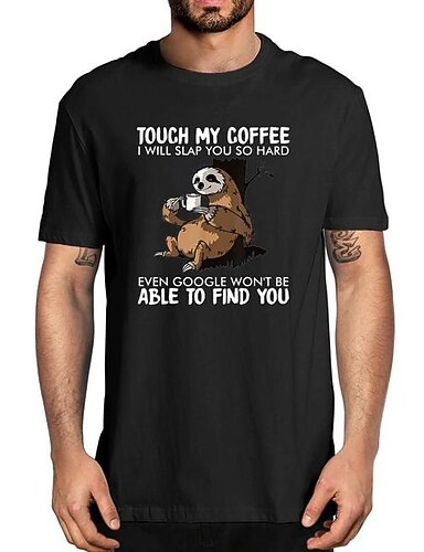 Camiseta Masculina Engraçada de Coffee Sloth Gráfica - "Toque Meu Café" Manga Curta Estilo de Vida Vermelha