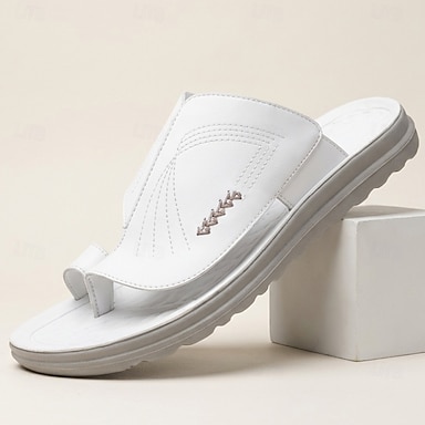 Sandálias masculinas brancas com anel no dedo, modelo slide, chinelos casuais de bico aberto, leves e confortáveis, ideais para o verão, férias na praia, resorts, piscina, viagens, uso em casa, lazer ao ar livre e estilo casual.