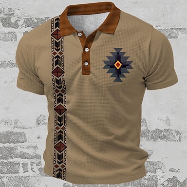 Homens Tribal Étnico Camiseta Camisa Henley Camisetas Manga Curta Designer Básico Clássico Ao ar livre Casual Diário Verão Castanho Escuro Azul Marinha Colar Henley Henley Camiseta Henley