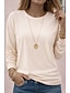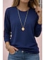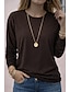 Mulheres Extra Grande 100% Algodão camiseta de tricô Côr Sólida à moda Clássico Casual Manga Longa Gola Redonda Tops regulares Diário Para Noite Marron Escuro Preto Branco Vermelho Azul Marinha