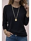 Mulheres Extra Grande Camisetas 100% Algodão Blusas lavadas estilo vintage Vintage à moda Casual Manga Longa Gola Redonda Decote Redondo Tops regulares Diário Para Noite Final de semana Preto Marfim