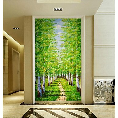 grande pintado à mão decoração de casa arte de parede vertical bétula verde floresta outono paisagem faca de paleta grossa pintura a óleo sobre tela sem moldura