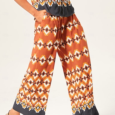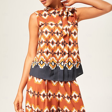 Mulheres Feminino Camisa casual Abstrato Casual Sem Mangas Laranja Sem Manga Elegante Boêmia Férias Decote Transpassado Verão
