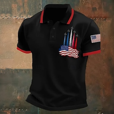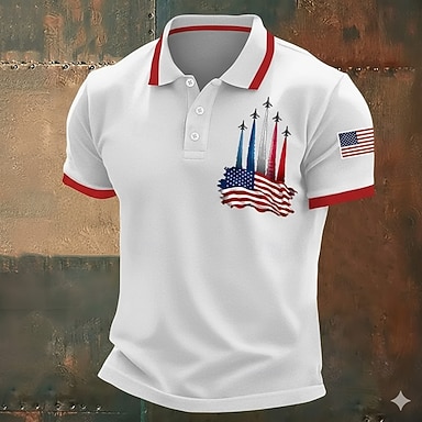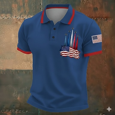 4 de julho de 2026 250º Homens American US Flag Pólo Manga Curta Colarinho polo Casual Diário Roupa Esportiva Casual / Diário Festival Botões Verão Branco Azul Laranja