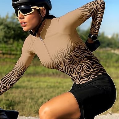 Mulheres Camisa para Ciclismo Gráfico Leopardo Gradiente Manga Longa Moto Camisa / Roupas Para Esporte Blusas com 3 bolsos traseiros Filtro Solar Resistente a UV Secagem Rápida Tiras Refletoras