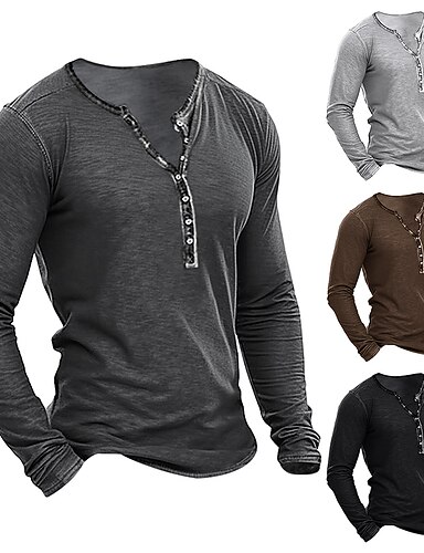 Homens Camiseta Camisa Henley T-shirt Manga Longa Tecido Moda Designer Básico Desaparecido Henley Férias Rua Para Noite Primavera & Outono Cinzento Escuro Preto Café Camiseta Henley