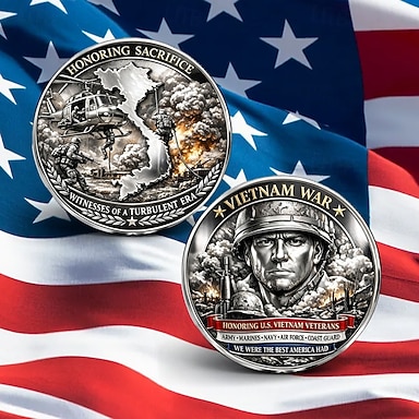 Moeda comemorativa dos veteranos da Guerra do Vietnã, em homenagem ao serviço militar dos EUA (Exército, Fuzileiros Navais, Marinha, Força Aérea e Guarda Costeira). Presente patriótico colecionável.