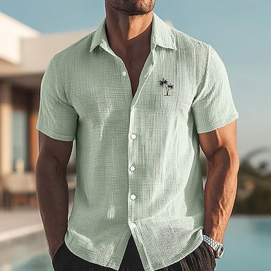 Homens Coqueiro Plantas Tropicais Camisa Waffle camisa de botão Manga Curta Havaiana Diário Feriado Roupa de Praia Verão Aberto para a Lateral Impressão 3D Camisa de malha Camisa para fora da calça