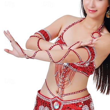 Acessórios de Samba Acessórios para Braço de Dança do Ventre com Contas e Lantejoulas Vermelhas Fantasia de Performance