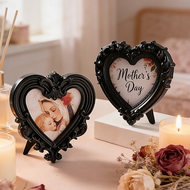 Moldura em forma de coração de resina preta para o Dia das Mães, expositor de fotos 3D ornamentado, decoração de mesa, decoração de festa, adereço fotográfico, presente para a mãe