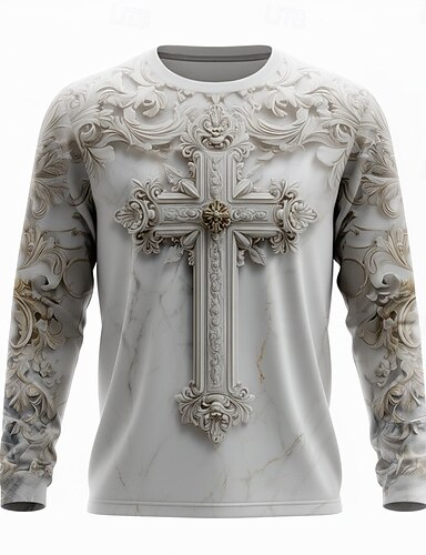 Camiseta Masculina da Bíblia Ilusão Óptica Cruz Camiseta de Manga Longa Camiseta 3D Impressão Camiseta de Gola Redonda Moda Exagerada 3D Dia a Dia Rua Branca 1 Branca 2 Verão Primavera Outono Roupas