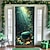 floresta encantada, magia, árvores verdes brilhantes, luz solar, névoa, lagoa, natureza, paisagem, porta de garagem, banner, mural externo, decoração de parede, jardim, exterior de casa, cenário de