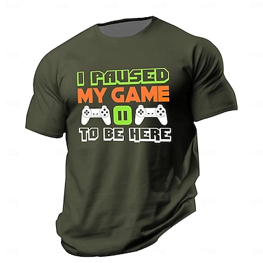 Camiseta Gráfica Masculina de Manga Curta - 'Eu Pausei Meu Jogo Para Estar Aqui' Design Engraçado de Jogos