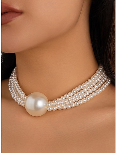 gargantilha de pérolas feminina - colar de pérolas falsas com várias camadas e contas grandes, joia de inspiração vintage para mulheres, ideal para coquetéis e ocasiões formais