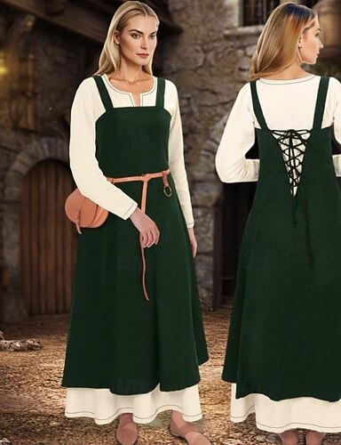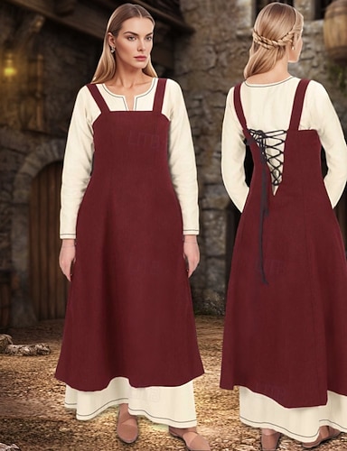Conjunto de avental viking medieval feminino com túnica rendada nas costas, conjunto de 2 peças de roupas para larp ren faire, festa renascentista, carnaval, vestido de halloween
