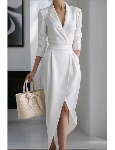 Halloween Mulheres Vestido midi Vestido Envelope Vestido Bodycon Elegante Férias Casual Fino Tecido Manga Longa Decote V Branco Rosa Azul Primavera Outono Inverno