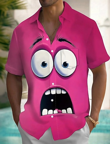 Homens Desenho Animado Engraçado Rosto humano Camisa Social camisa de verão camisa de botão Manga Curta Moda Casual Férias Festa Feriado Verão Primavera Aberto para a Lateral Impressão 3D camisas de