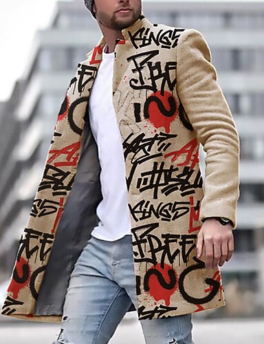 Homens Estampas Abstratas Graffiti Casaco de inverno Casaco Manter Quente Confortável Respirável Moda Roupa de rua Negócio Trabalho Vestir para trabalhar Para Noite Bolsos Imprimir Outono & inverno