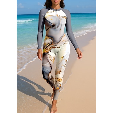 Mulheres Normal Anti Atrito Proteção solar de corpo inteiro Roupa de banho Gradiente Abstrato Mármore Com sutiã embutido Zíper Frontal Proteção Solar UV Cobertura Total UPF50+ Manga Longa Corpo