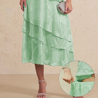 Mulheres Elegante Casual Médio Cintura Média Saias Floral Renda Frufru Hem irregular Micro-Elástica Encontro Casual / Diário Oliva Primavera / Outono / Inverno / Verão Poliéster