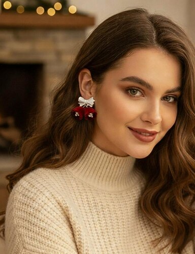 Brincos de sino de Natal com laços vermelhos e verdes – joias natalinas para mulheres