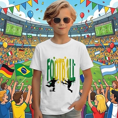 100% Algodão Infantil Para Meninos Branco Gráfico Jogador de futebol Camisa Blusa Gola Redonda Manga Curta Ao ar livre Dia a Dia Moda Roupa de rua Designer Estampado Verão