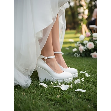 Mulheres Diário coquetel Baile de Formatura Presilha Plataforma Ponta Redonda Elegante Moda Estilo bonito Couro Ecológico Fivela Branco