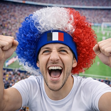 peruca de torcedor do dia do jogo da França vermelha, branca e azul