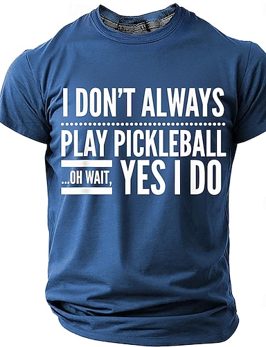 Camiseta masculina com estampa divertida e sarcástica de esportes: "Nem sempre jogo pickleball... ah, espera, jogo sim!". Manga curta, gola redonda, ideal para jogadores de pickleball. Camiseta