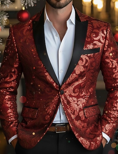Homens Jaqueta Blazer Colar de fechamento Natal Moda Festa Floral Folha Blazer Azul Vermelho Roxo Moderno Comum 1 Butão