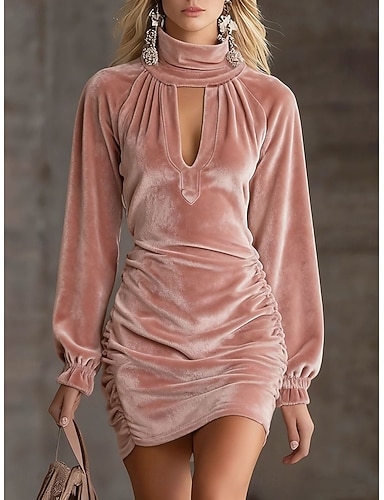 Mulheres Minivestido Vestido de veludo Vestido de formatura Vestido de festa Elegante Moda Moderno Manga lanterna Festa de Noite Festa Coquetel Normal Tecido Manga Longa Gola Alta Rosa Vinho Verde