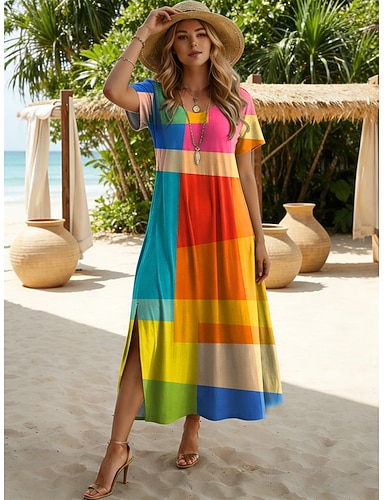 Mulheres Vestido midi Vestido A Line Férias Casual Praia Feriado Encontro Ajuste Largo Gráfico Abstrato Manga Curta Gola Redonda Azul Amarelo Roxo Laranja Verão Primavera