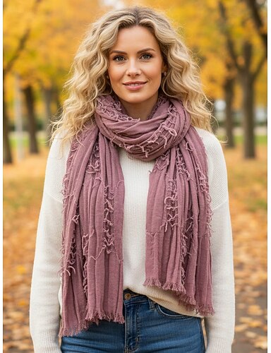 Lenço feminino em algodão e linho com franjas – estilo boêmio, diversas cores, leve e confortável para uso casual e diário.