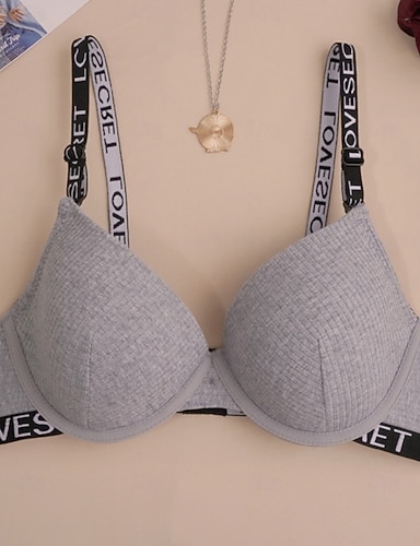 Mulheres Lingerie Sensual Sutiã ImprimirNightwearAlgodão Casual Letra Moda Estilo bonito Preto Cinzento Primavera Verão Outono & inverno