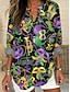 Blusa Feminina Mardi Gras Linho Semelhante Respirável Leve Gráfico Vintage Diário Estilosa Manga Longa Decote em V Long Tops Uso Diário Estampado Preto Verão Primavera