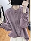 Mulheres Camisa Social Blusa Textura Camisas inspiradas em linho Blusa Botões Tecido Moderno Casual Manga Longa Decote V Tops regulares Feriado Para Noite Branco Roxo Claro Cáqui Azul Claro Outono