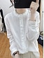 Mulheres Camisa Social Conjuntos inspirados em linho Botão para cima Camisa de algodão Patchwork Botões Côr Sólida Diário Casual Manga Longa Bispo Colarinho de Camisa Tops regulares Diário Branco
