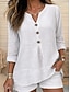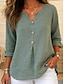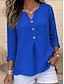 Blusa Feminina de Linho Sintético como Algodão com Botões Cor Sólida Elegante Diária Estilosa Manga Longa Decote em V Tops Regulares Diários Azul Preto Branco Verde Bege Verão Primavera Outono