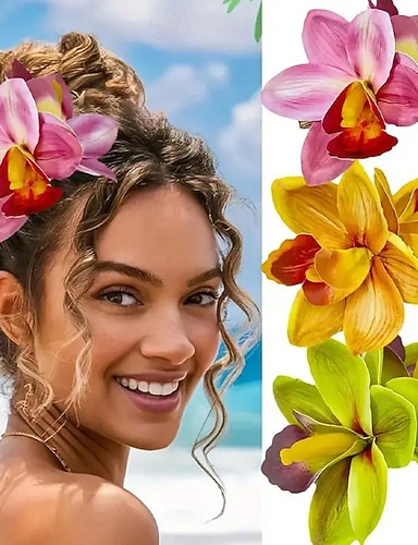 1pç Mulheres Grampo de cabelo de garra de cabelo Para Ao ar livre Feriado Festival Retro Feito à mão Tecido Branco Rosa Laranja