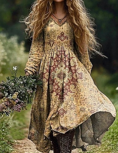 vestido boho feminino floral decote em v vestido maxi vestido vintage vestido estampado moda moderna verão primavera