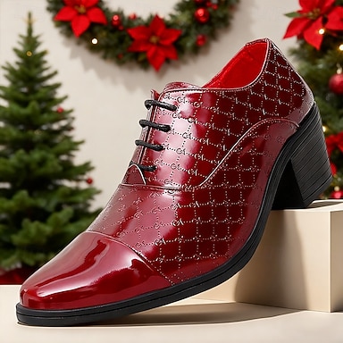 sapatos sociais masculinos de couro sintético vermelho com detalhes cravejados – sapatos elegantes para festa de Natal para homens