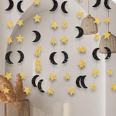 Guirlanda brilhante de lua e estrela de 3m para o Ramadã e Eid, faixa suspensa cintilante para o festival islâmico, decoração de parede Ramadã Mubarak, decoração para festas do Oriente Médio.