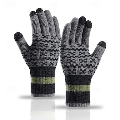 Homens 1 par Luvas de Inverno luvas de malha Luvas sem dedos Esportes Moda Esporte & lazer Luvas Térmico / Quente Tosão Geométrica Outono Preto Branco Vermelho Kakhi