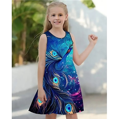 Meninas 3D Pavão Spot de Luz Multi-Colorida Vestido Sem Manga Verão Primavera Férias Diário Feriado Princesa Lindo Doce Infantil 4-12 anos Vestido casual Vestido A Line Altura dos Joelhos Normal