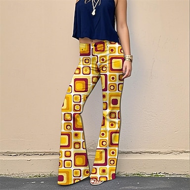 Retro Vintage Anos 70 Groovy Calça boca de sino leggings flare Calças boca de sino Hippie Discoteca Cintura Alta Geométrico Psicodélico Fantasia Mulheres Dia Das Bruxas Carnaval Férias Festival de
