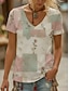 Mulheres Normal Camiseta Patchwork Imprimir Gráfico Xadrez Tribal Vintage Moda Ocidental Manga Curta Decote V Tops regulares Diário Férias Para Noite Rosa empoeirada Todas as Estações