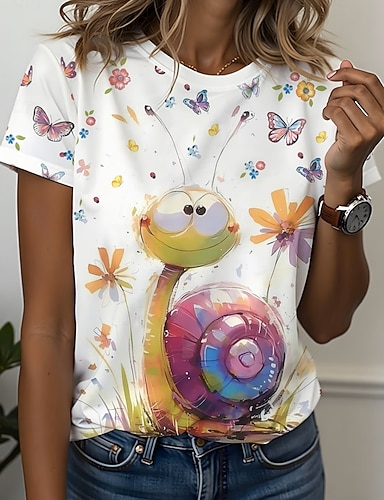 Mulheres Camiseta Imprimir Gráfico Animal Borboleta Vintage à moda Básico Manga Curta Gola Redonda Decote Redondo Tops regulares Diário Final de semana Azul Branco vermelho Preto Branco Amarelo Verão