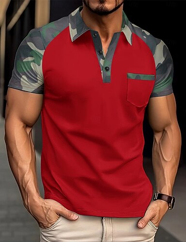 Homens Pólo Camisa de golfe O negócio Casual Clássico Manga Curta Moda Básico Côr Camuflagem Bolsos Frente do botão Verão Primavera & Outono Normal Preto Vermelho Azul Marinho cáqui Pólo