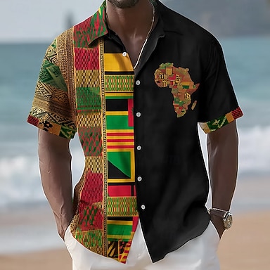 Juneteenth Homens Tribal Mapa Ética / Africano Camisa Social camisa de verão camisa de botão Manga Curta Vintage retrô Feriado Verão Primavera Aberto para a Lateral Impressão 3D camisas de colarinho