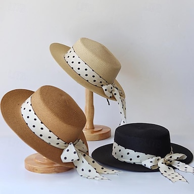 Elegante Retro Vintage Rockabilly Fascinador Chapéu de sol de palha Bolinhas Fantasia Mulheres Dia Das Bruxas Baile de Máscaras Praia Férias Casual / Diário Adulto Chapéu
